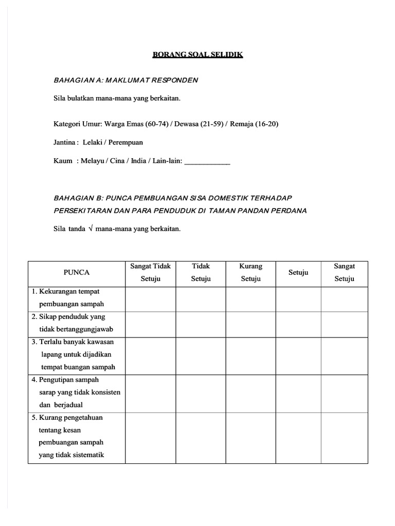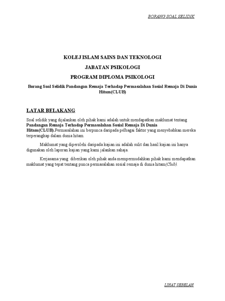 Borang Soal Selidik Mengkaji Punca Utama Masalah Sosial Dalam Kalangan Remaja Pdf